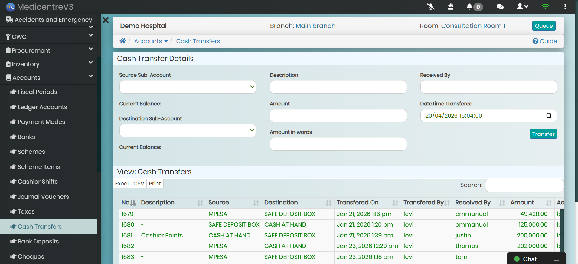 From cashier collections to bank deposits, every transfer is recorded. The system creates a clear audit trail from the point of collection to final deposit, ensuring nothing goes missing.