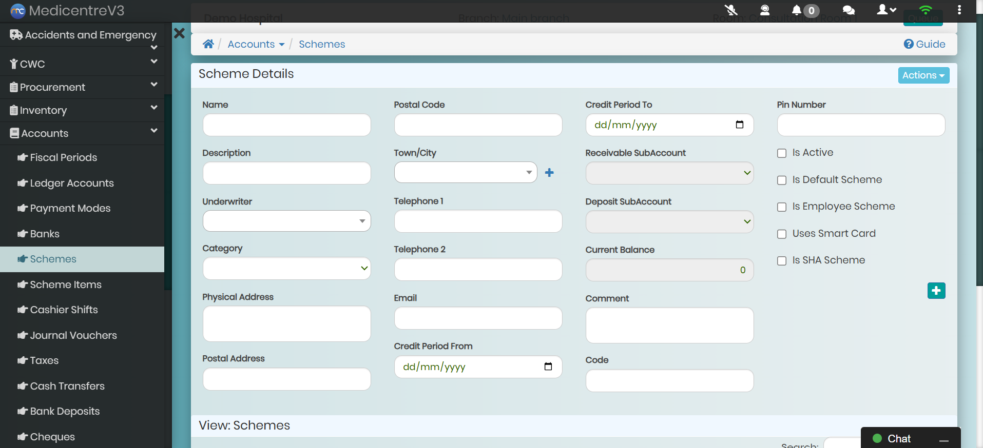 You can configure insurance schemes, define coverage limits, and assign pricing for services and products. This ensures correct billing for each scheme and reduces errors in claims and reimbursements.